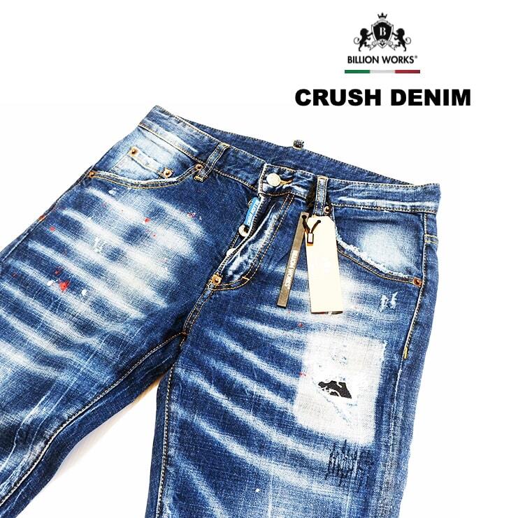 BillionWorks新作インディゴブルー、ダメージ加工デニム。